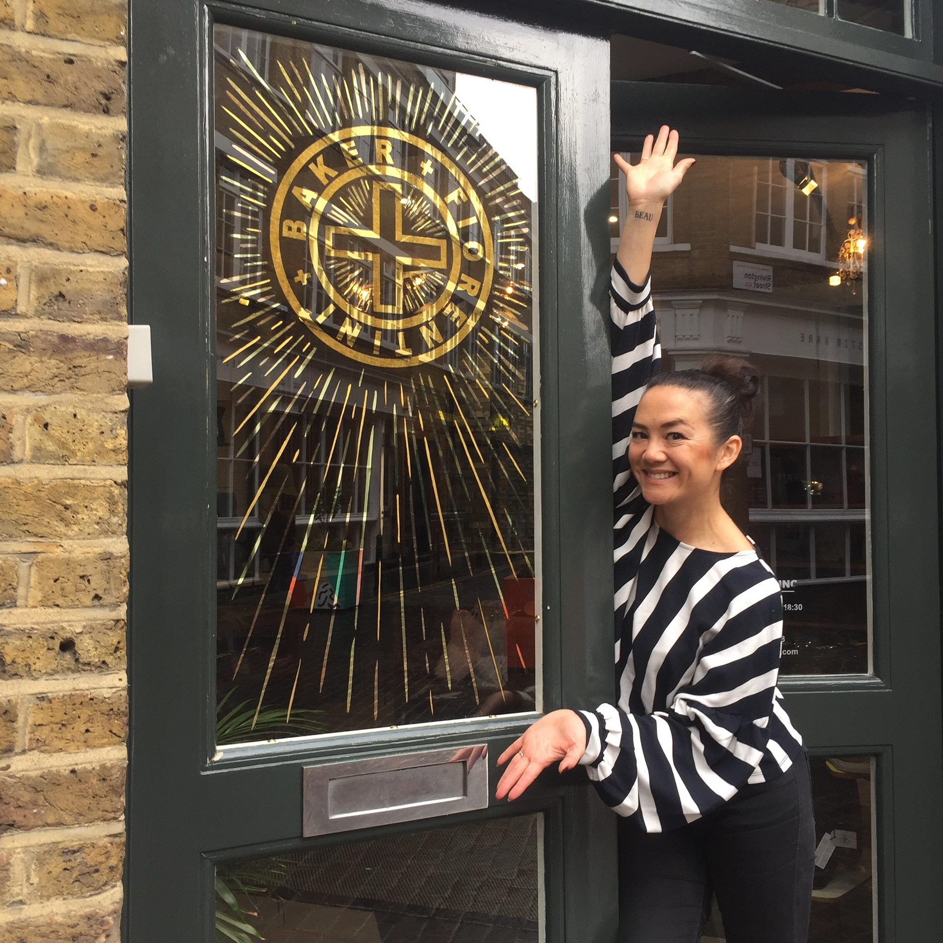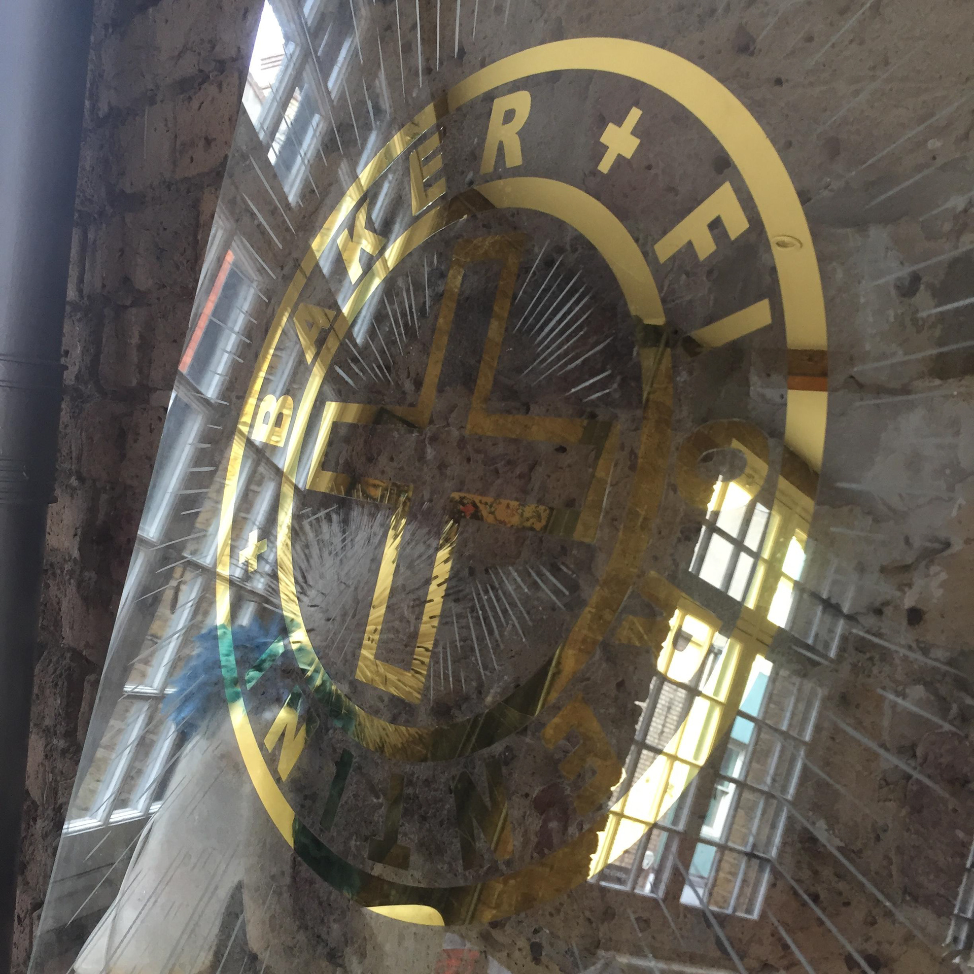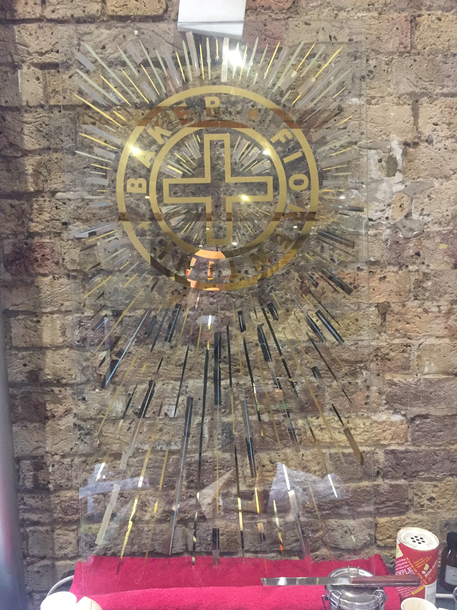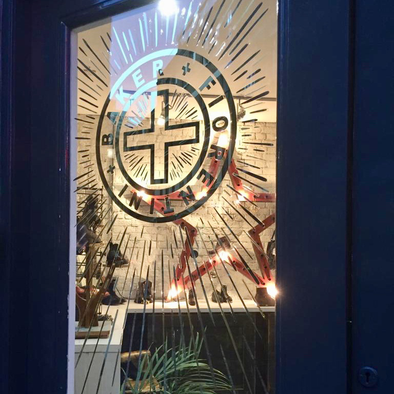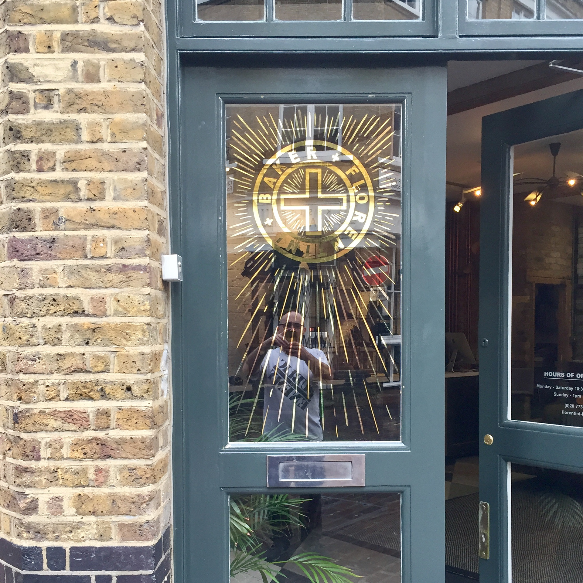 This logo was gilded to the main entrance to Fiorenti and Bakers flagship store in London. It's water and oil gilded with 24crt/ Italian lemon and moongold. EC2